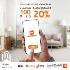 بنكُ القاهرةِ يتيحُ خصمَ 20 % عندَ الدفعِ بمحفظةٍ «القاهرةِ كاش» على «Waffarha»