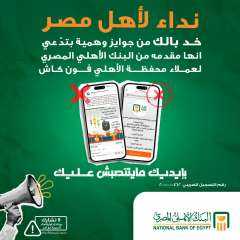 البنك الأهلي المصري يحذّر من عروض جوائز وهمية على مواقع التواصل الاجتماعي